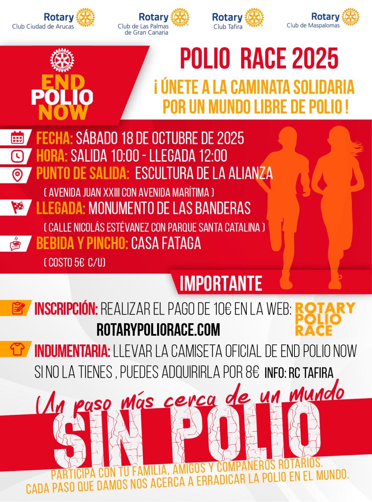 Eventos y carreras deportivas solidarias a nivel mundial contra la poliomielitis, organizada por los Clubes Rotarios.